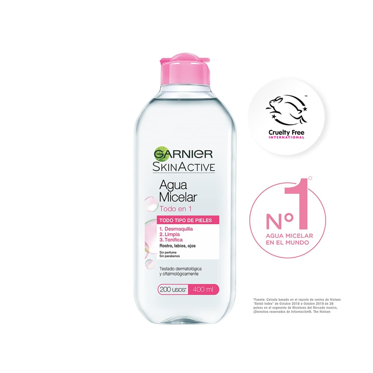 El Agua Micelar Todo en 1 limpia, desmaquilla y tonifica en un solo gesto rostro, ojos y labios. Una fórmula reconfortante y sin perfume ideal para todo tipo de piel, incluso las más sensibles. Eficacia comprobada: sus micelas actúan como imanes para captar y remover suciedad, restos de maquillaje y sebo. Limpia sin sensación grasosa.