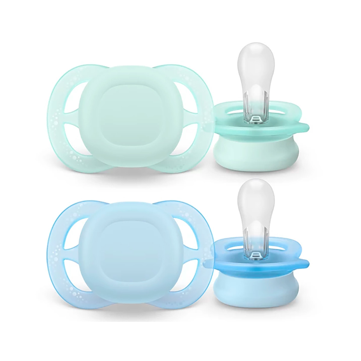 Calma con la comodidad del aire. El chupete Philips Avent ultra air cuenta con orificios de ventilación extragrandes para mantener la piel del bebé seca. Disponible en varios colores y diseños.