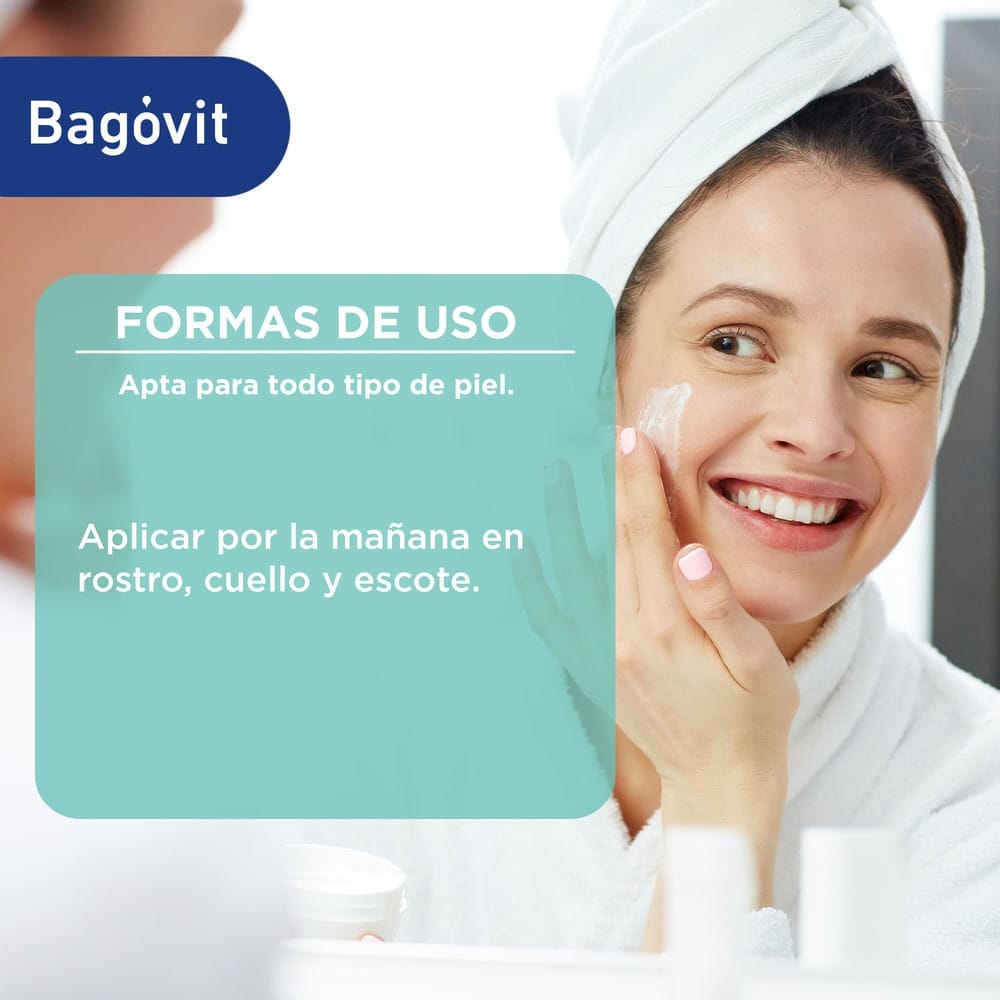 Crema Facial Bagóvit Pro Bio Anti-manchas 50 ml previene y reduce de forma eficaz la aparición de manchas en el rostro, cuello y escote. Gracias a su fórmula con Actiwhite que inhibe la formación de melanina y reduce la hiperpigmentación, y Vitamina C y Niacinamida, que ayudan a lograr un efecto reparador y aclarador, se logra una tez homogénea, luminosa y radiante. Una crema con pollushied que protege de la polución, de los rayos de sol y luz azul. También combate la falta de elasticidad y tonicidad de la piel gracias a la Vitamina A. Ideal para todo tipo de piel y para su uso de día ya que cuenta con FPS40.