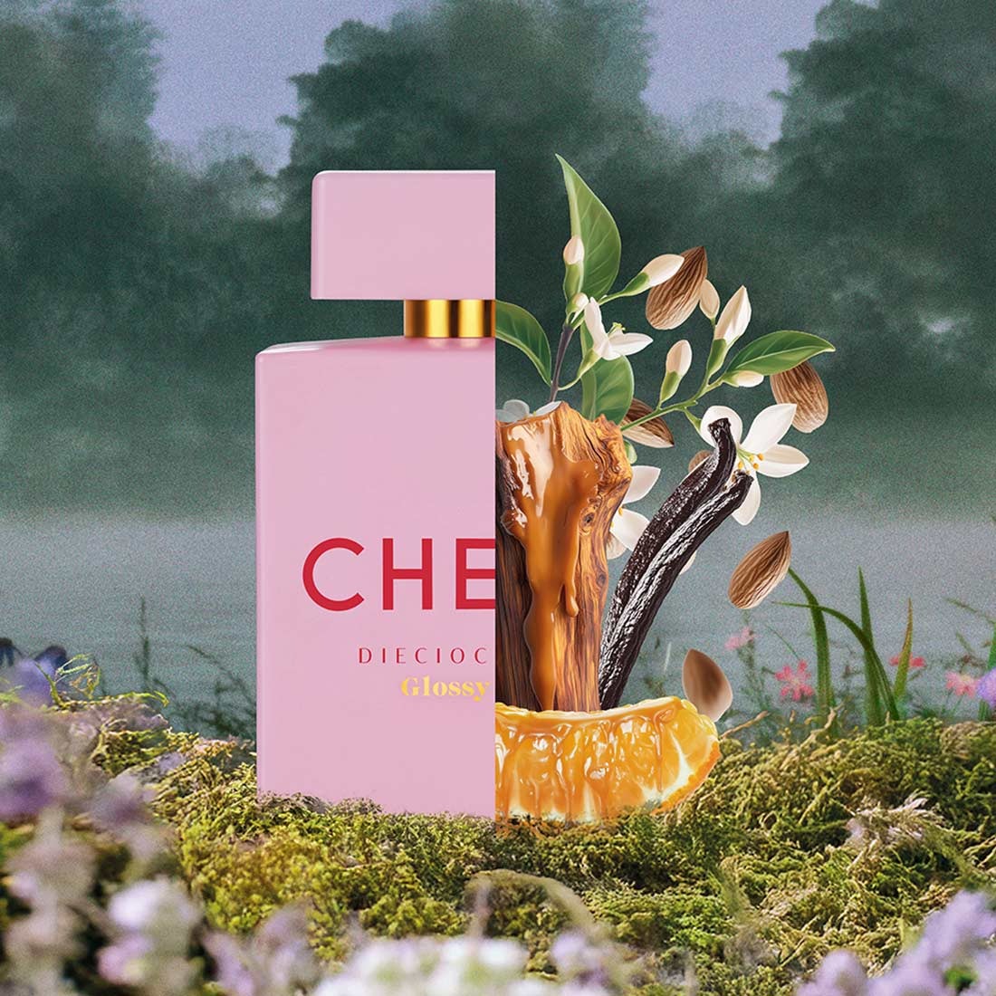 Déjate seducir por DIECIOCHO GLOSSY, una fragancia Floral Gourmand que despierta tus sentidos y enciende tu imaginación. Con notas de almendra y mandarina caramelizada, su corazón cremoso de leche de coco, jazmín y neroli de Túnez evoca un mundo colorido y vibrante. El fondo combina vainilla de Madagascar, haba tonka y madera de cashmeran, dejando una estela cálida e inolvidable. Una fragancia divertida, única, para quienes desean brillar.