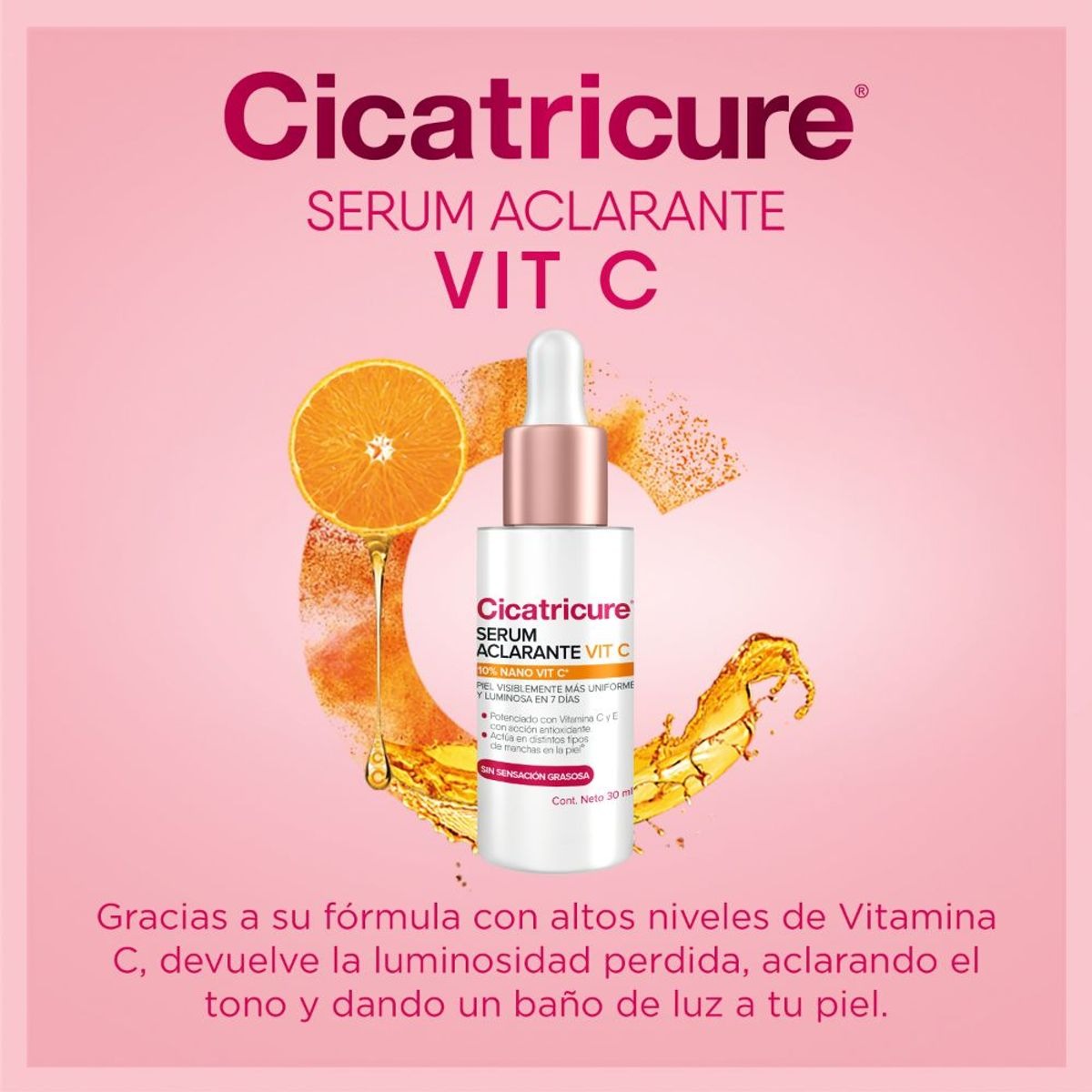 ILUMINA TU ROSTRO: Gracias a su fórmula con altos niveles de Vitamina C, devuelve la luminosidad perdida, aclarando el tono y dando un baño de luz a tu piel.