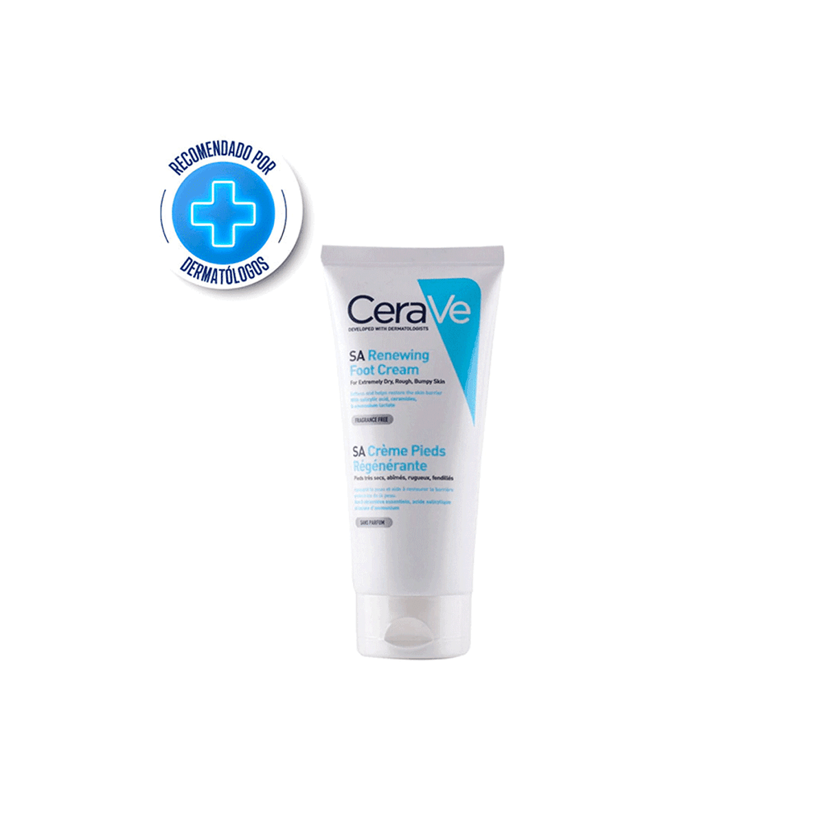 Desarrollada con dermatólogos, la Crema para Pies Renovadora con Ácido Salicílico de CeraVe hidrata de forma efectiva y ayuda a reparar la barrera protectora de la piel de los pies. Esta crema no grasa de rápida absorción con 3 ceramidas esenciales y ácido hialurónico, exfolia e hidrata la piel de los pies extremadamente seca e irregular para suavizar y mejorar la textura de la piel dañada. Su fórmula sin perfume es adecuada para pieles sensibles.