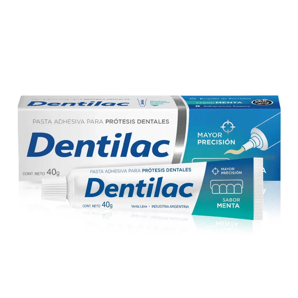 Dentilac es un adhesivo para prótesis dentales que garantiza hasta 9 horas de fijación prolongada. Sabor a menta. Otorga seguridad y confianza al comer, hablar o sonreir cuando se tiene prótesis completas o parciales.