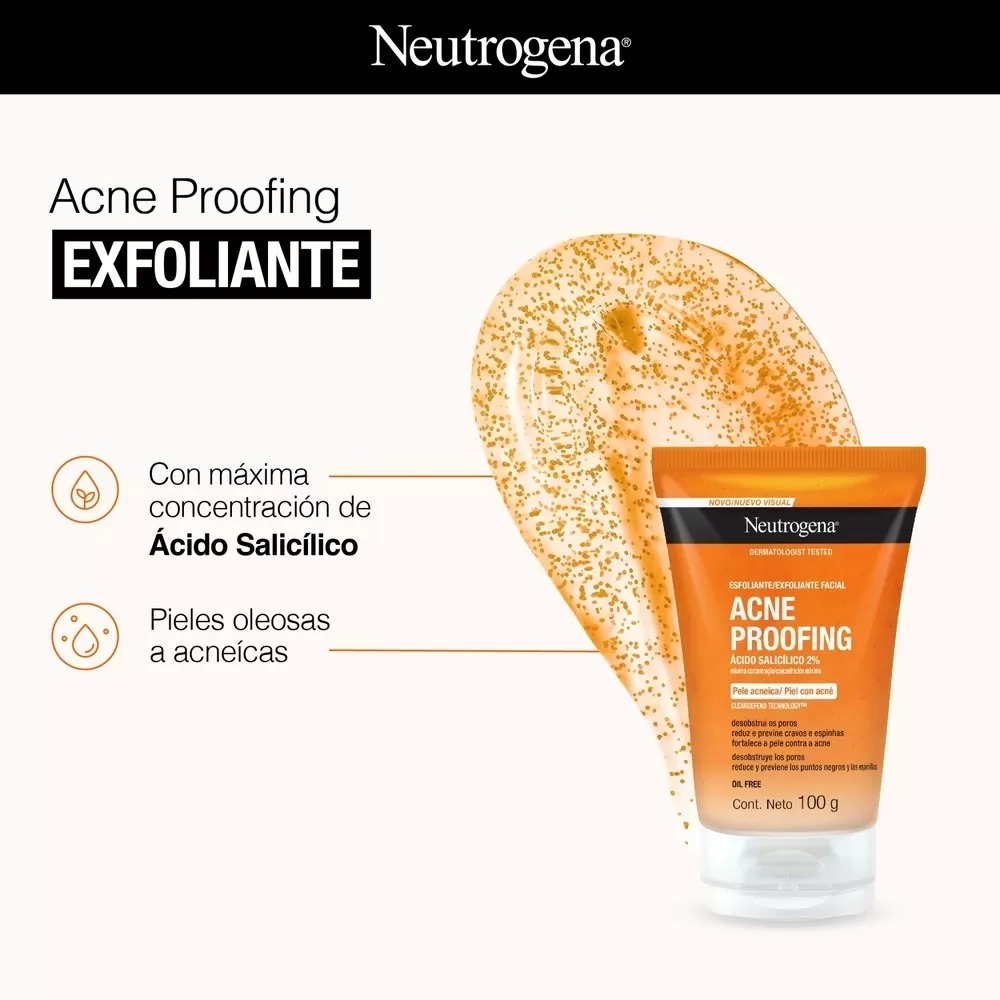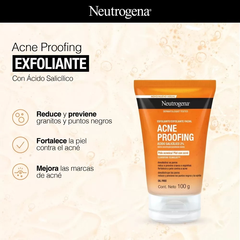 Remové impurezas, desobtruí poros y fortalecé la defensa natural de tu piel con el exfoliante NEUTROGENA® ACNE PROOFING®. Posee una formula con microesferas para hacer tu piel más resistente y combatir la aparición de granitos y puntos negros.