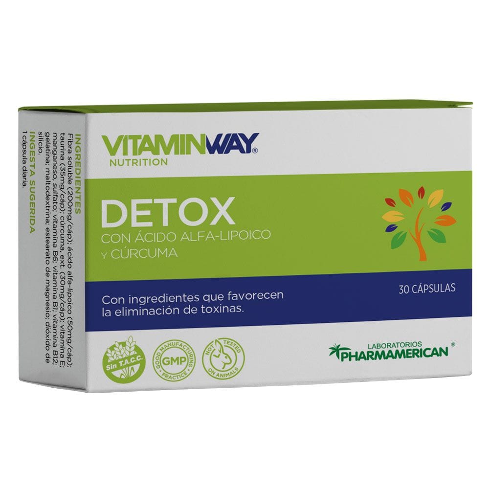 El suplemento nutricional Detox Vitamin Way® ayuda al organismo a eliminar lo que no necesita.Sus ingredientes ayudan a optimizar el funcionamiento de los órganos encargados de la eliminación de toxinas.