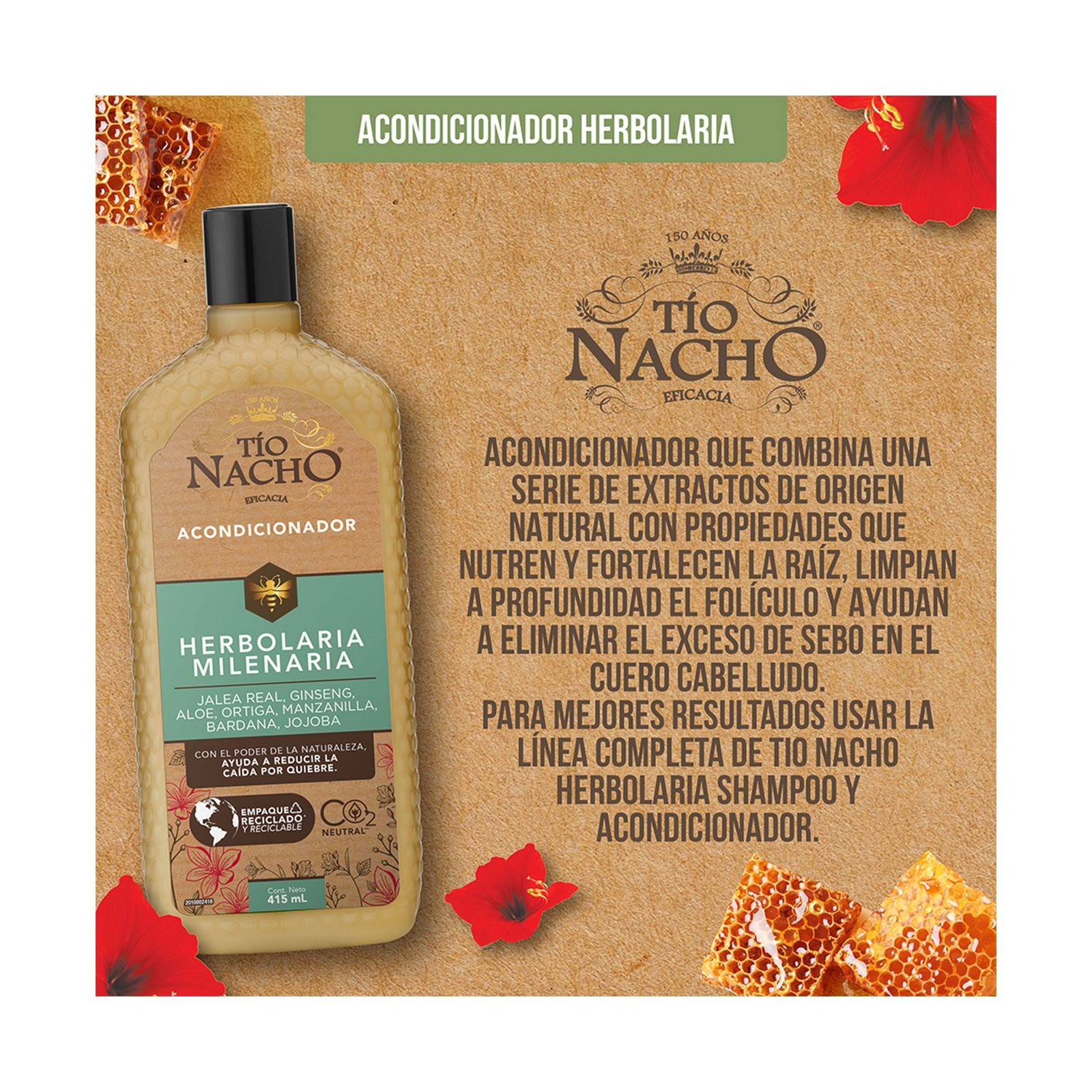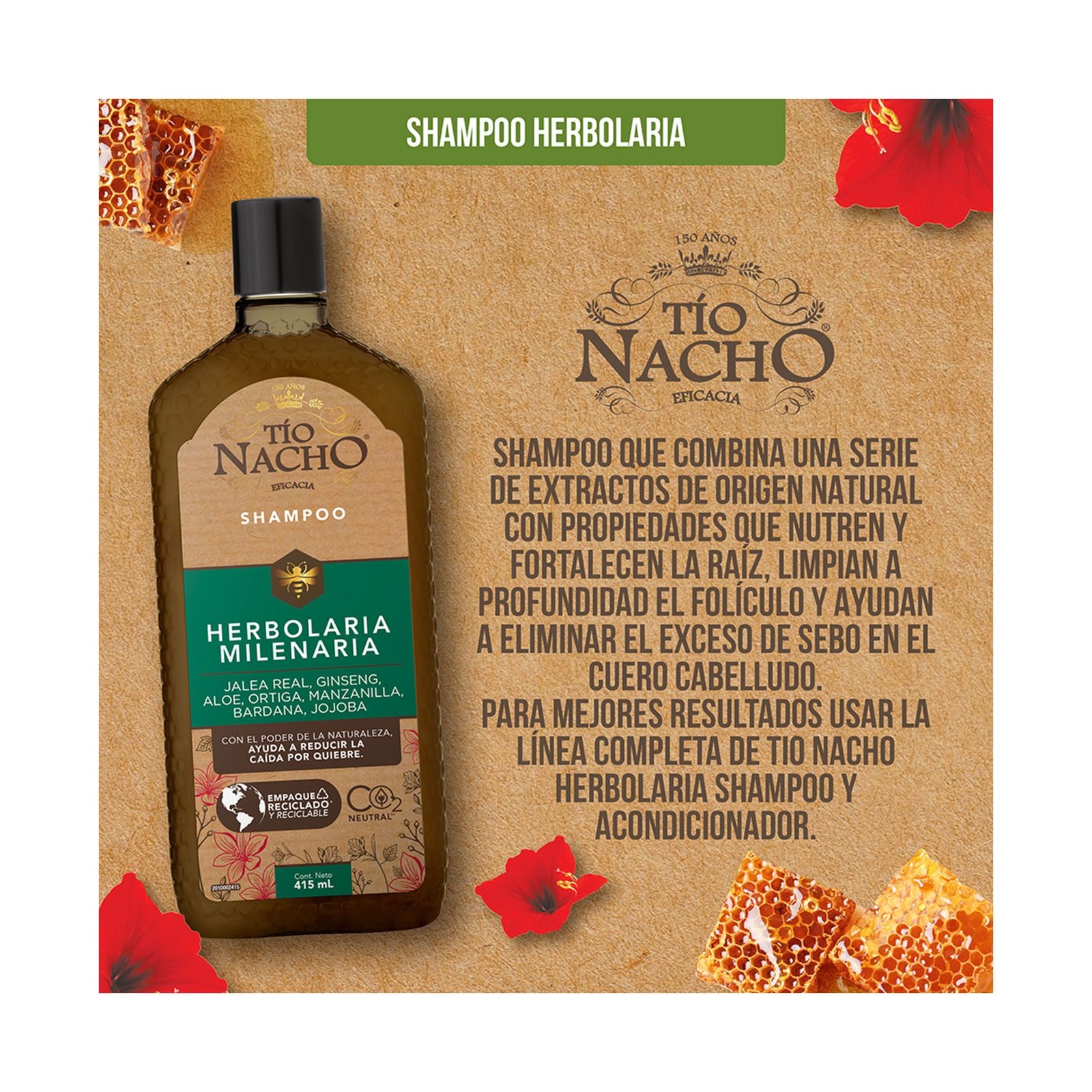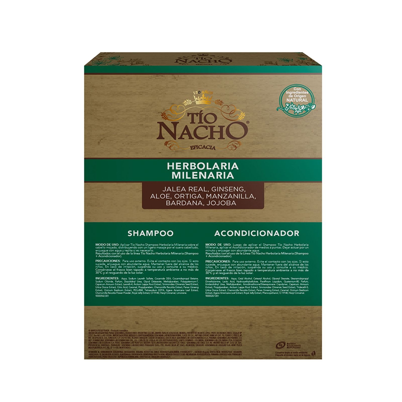 Shampoo y Acondicionador Tío Nacho Herbolaria Milenaria, con jalea real, ortiga y extractos anti caída de origen natural