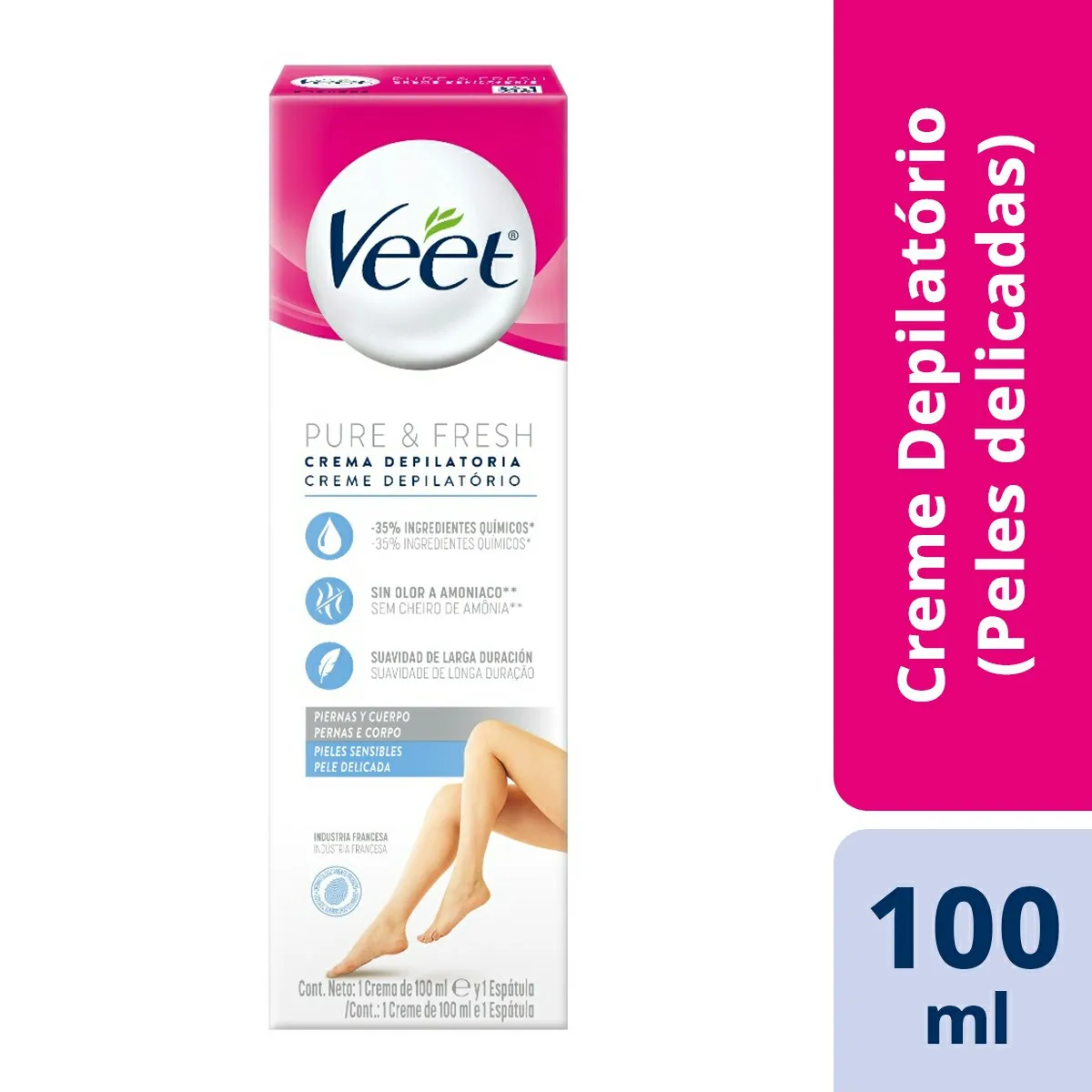 Veet crema depilatoria corporal para piel sensible remueve el vello de forma eficaz, incluso hasta los vellos más cortos. Además, su fórmula con vitamina E y aloe vera, humecta y deja tu piel sedosa. Ideal para remover el vello de piernas, axilas, brazos y área del bikini. Deja la piel suave y humectada por 7 días. Leer detenidamente las instrucciones antes de usar.